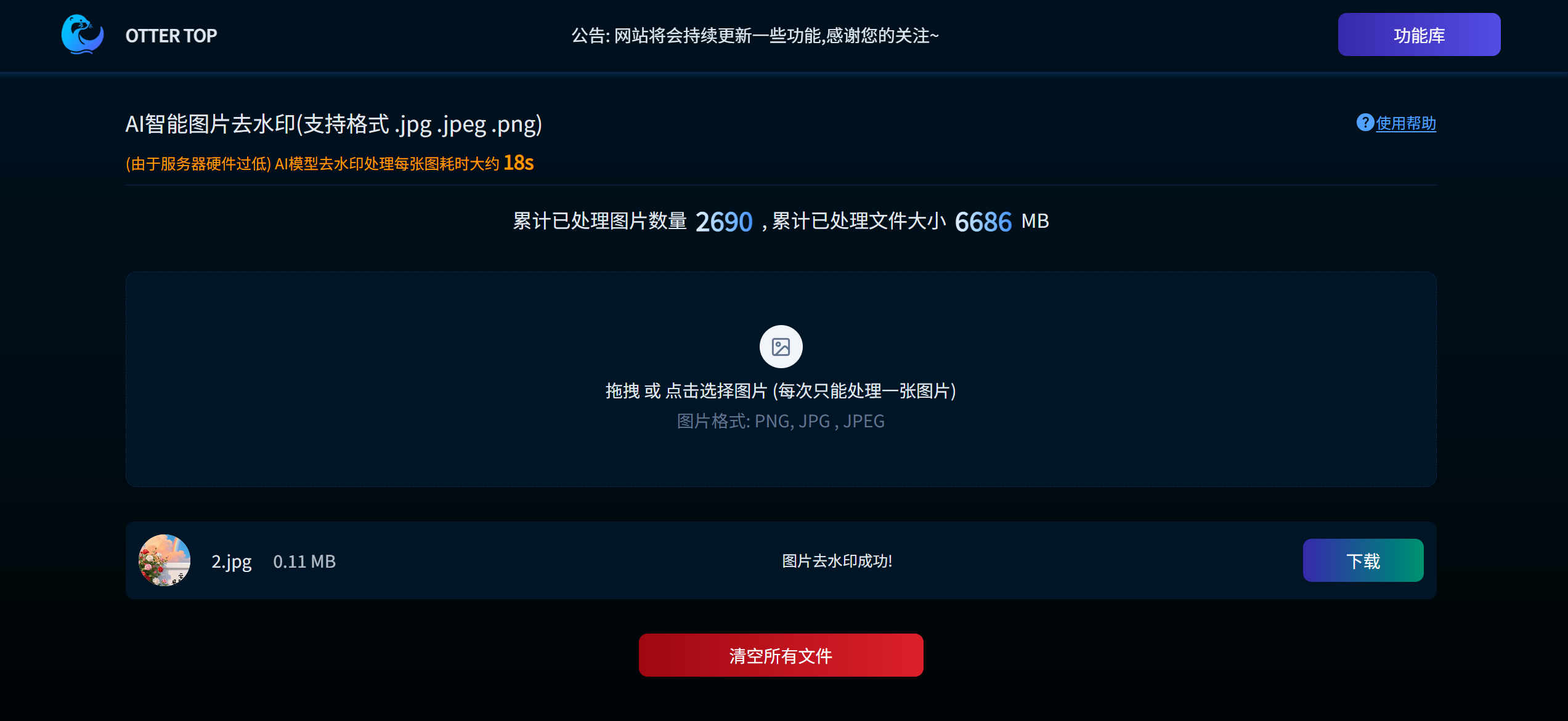 智能识别去除图片简单的水印 (支持 .png .jpg .jpeg)