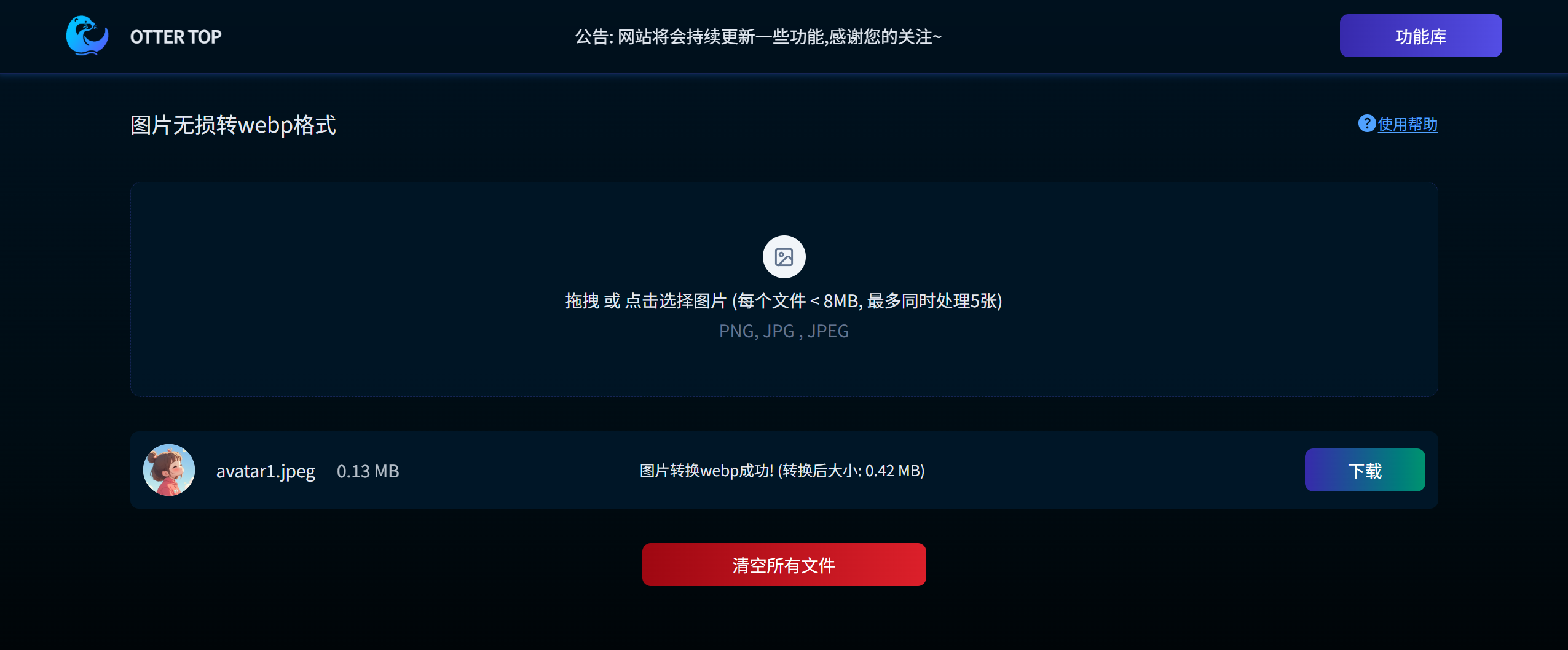 转换图片格式为WEBP (支持 .png .jpg .jpeg)